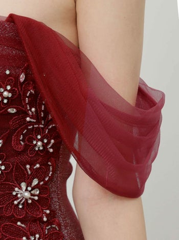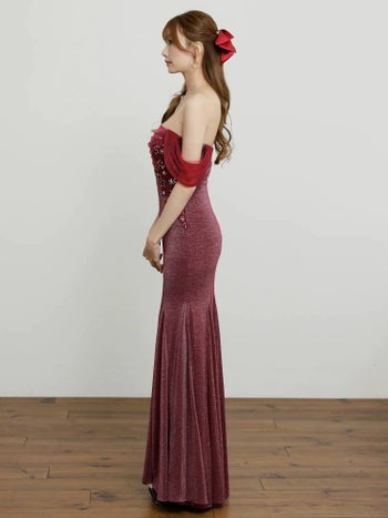3. 【Angel R/エンジェルアール】2way 肩あき フラワーレース オフショルダー セクシー ビジュー ラメ マーメイドロングドレス (AR25863)