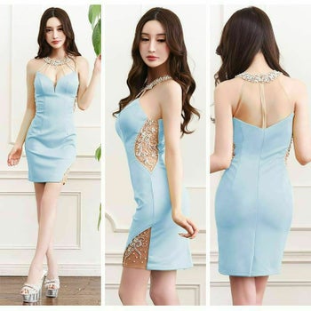 ワンカラー デコルテストーン& ビジュー タイトミニドレス