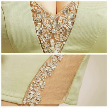 スタイルアップ デコルテ スパンコール パールビジューVバスト タイトミニドレス