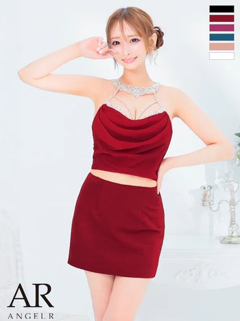 XSあり!お顔周りでリッチな輝きを放つ☆ SALE【Angel R/エンジェルアール】デコルテビジュー バストドレープ セットアップ タイト マイクロミニドレス (AR23223)