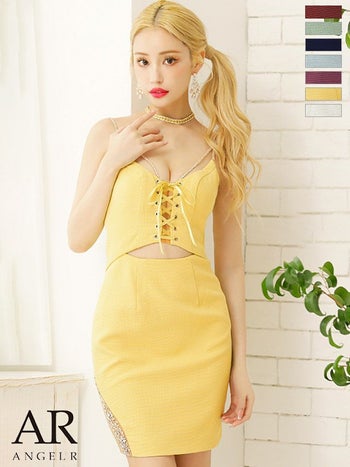 3. 【Angel R/エンジェルアール】キャミソール アッパー レースアップ ツイード ワンカラーウエストカット タイトミニドレス (AR23316)