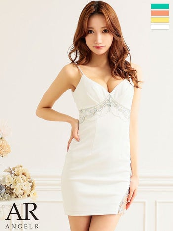 XSあり!清純なプリンセスを演出☆ SALE【Angel R/エンジェルアール】ワンカラー バストタックビジュー デザインパール キャミソール チェーン タイトミニドレス (AR24217)