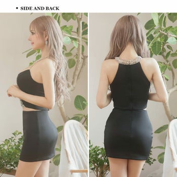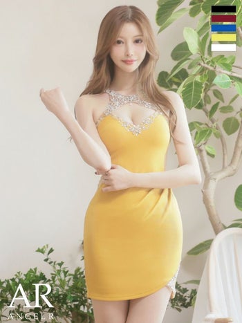 XSあり!デコルテビジューがお顔周りを華やかに☆ 【Angel R/エンジェルアール】セクシー オープンバスト ホルターネック デコルテビジュー メッシュ くびれ透け タイトミニドレス (AR24230)