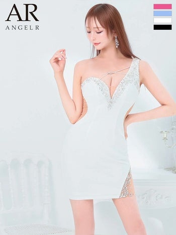 XSあり!SEXYなシルエット☆ 【Angel R/エンジェルアール】オープンバスト くびれ透け パールチェーン ハートチャーム ビジュー セクシー ワンショルダー タイトミニドレス (AR24254)