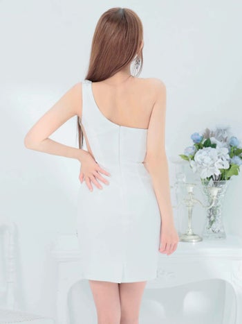 4. 【Angel R/エンジェルアール】オープンバスト くびれ透け パールチェーン ハートチャーム ビジュー セクシー ワンショルダー タイトミニドレス (AR24254)