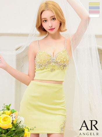 XSあり!エレガントで華やか☆ 【Angel R/エンジェルアール】オープンバスト キャミソール ビジュー セットアップ セクシー タイトミニドレス (AR24325)