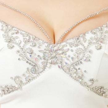 キュート バストショルダー ビジュー フリル オフショルダー タイトミニドレスのイメージ画像10
