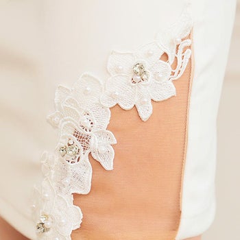 フラワーレース オフショルダー バストメッシュ くびれ透け ビジュー タイトミニドレスのイメージ画像10