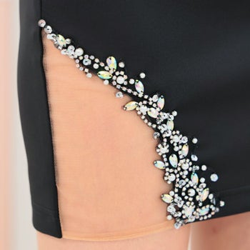 3. 【Angel R/エンジェルアール】アシンメトリー メッシュ フラワービジュー セクシー オープンバスト キャミソール タイトミニドレス (AR24823)