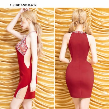 4. 【Angel R/エンジェルアール】オープンバスト くびれ透け メッシュ ビジュー ホルターネック セクシー タイトミニドレス (AR24836)
