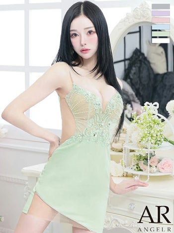 キャバドレス Angel R エンジェルアール ビジュー セクシー オープンバスト キャミソール くびれ透け 刺繍レース タイトミニドレス