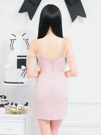 4. 【Angel R/エンジェルアール】キャミソール くびれ透け バストクロス ショルダービジュー メッシュ オープンバスト タイトミニドレス (AR25203)