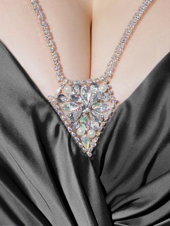 3. 【Angel R/エンジェルアール】サテン ワンカラー ネックビジュー ホルターネック セクシー タイトミニドレス (AR25221)