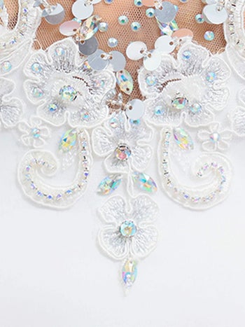 4. 【Angel R/エンジェルアール】ビジュー 袖あり シースルー Vカット 刺繍レース セクシー タイトミニドレス (AR25305)