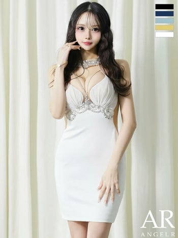 キャバドレス Angel R エンジェルアール くびれ透け セクシー バストカット ホルターネック ビジュー タイトミニドレス