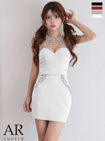 キャバドレス Angel R エンジェルアール セクシー ホルターネック パールチェーン ビジュー オープンバスト ポケット セットアップ タイトミニドレス