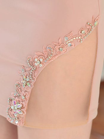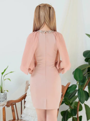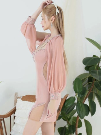 3. 【Angel R/エンジェルアール】セクシー オープンバスト ホルターネック 長袖 シースルー シフォンスリーブ くびれ透け ラインストーン ビジュー タイトミニドレス (AR25812)