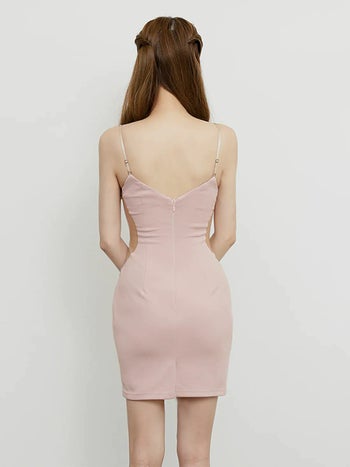 3. 【Angel R/エンジェルアール】キャミソール くびれ透け Vカット ビジュー アッパーフラワーレース メッシュ セクシー タイトミニドレス (AR25861)