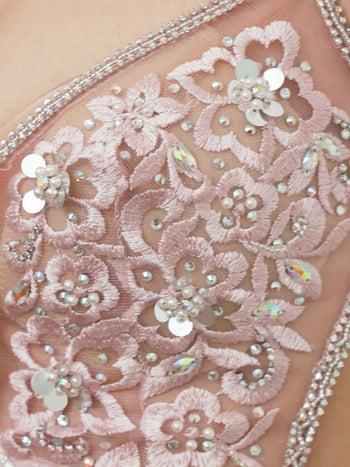 4. 【Angel R/エンジェルアール】キャミソール くびれ透け Vカット ビジュー アッパーフラワーレース メッシュ セクシー タイトミニドレス (AR25861)