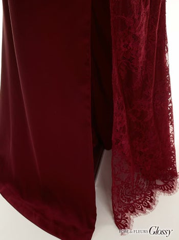 3. 【Glossy by ROBE de FLEURS/グロッシー】レース切替オフショルダ― くびれ透け ウエストクロス タイトロングドレス(GL1624)