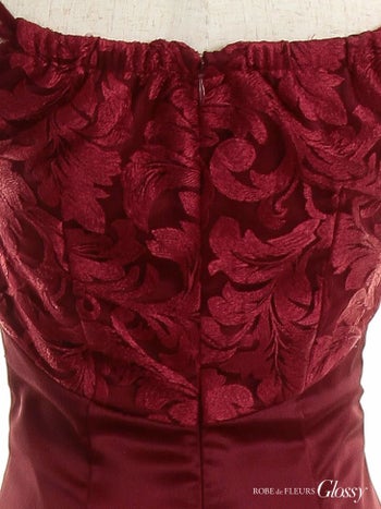 4. 【Glossy by ROBE de FLEURS/グロッシー】レース切替オフショルダ― くびれ透け ウエストクロス タイトロングドレス(GL1624)