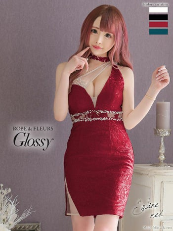 【Glossy by ROBE de FLEURS/グロッシー】スパンコール レース×サイドチュール切替 タイトミニドレス[XSあり][2504-1]