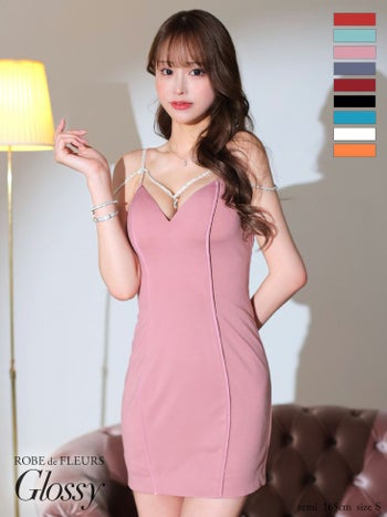 XSあり!大人気商品から新色登場♪ 【Glossy by ROBE de FLEURS/グロッシー】ワンカラー ストレッチ キャミソール エレガント デコルテビジュー セクシー タイトミニドレス (GL2816)