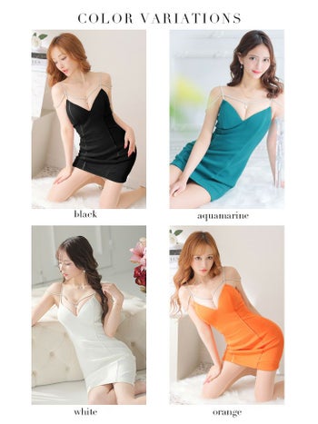 4. 【Glossy by ROBE de FLEURS/グロッシー】ワンカラー ストレッチ キャミソール エレガント デコルテビジュー セクシー タイトミニドレス (GL2816)