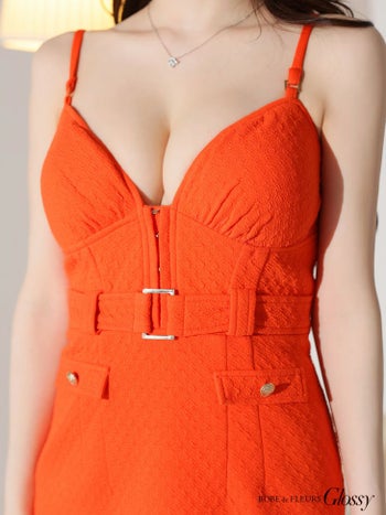 4. SALE【Glossy by ROBE de FLEURS/グロッシー】ベルトデザイン ハートカット セクシー キャミソール タイトミニドレス (GL3177)
