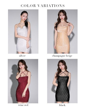 4. 【Glossy by ROBE de FLEURS/グロッシー】キャミソール バストビジュー ホルターリボン ラメニット シンプル セクシー タイトミニドレス (GL3193)