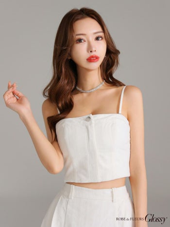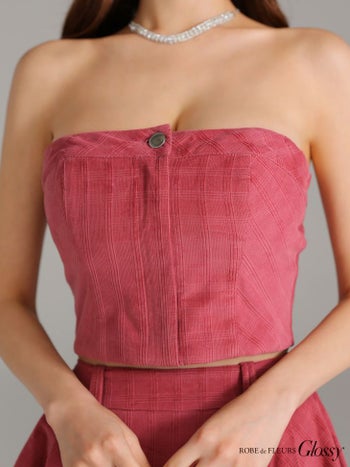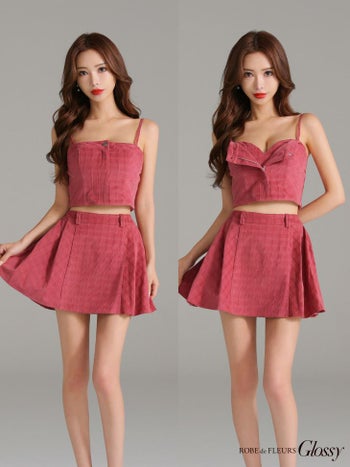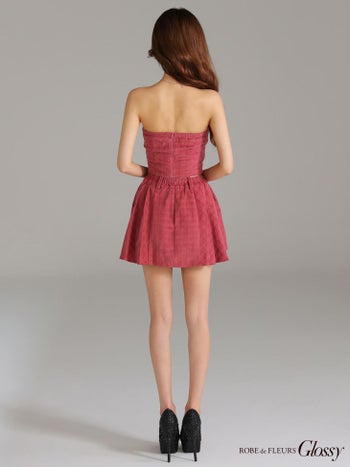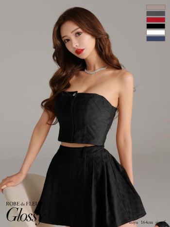 4. 【Glossy by ROBE de FLEURS/グロッシー】チェック柄 セットアップ オープンバスト ベアデザイン プリーツ セクシー フレアミニドレス (GL3284)