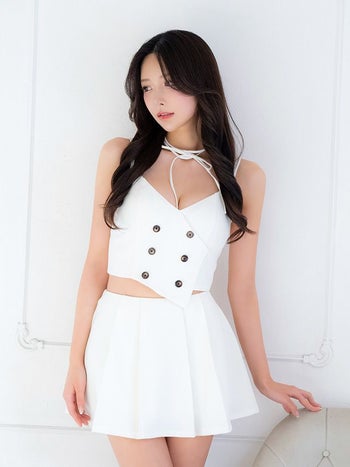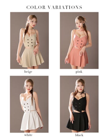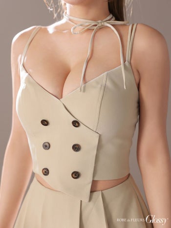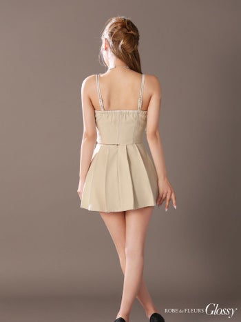 4. 【Glossy by ROBE de FLEURS/グロッシー】キャミソール オープンバスト プリーツ セクシー ダブルボタン セットアップ チョーカー付き フレアミニドレス (GL3289)