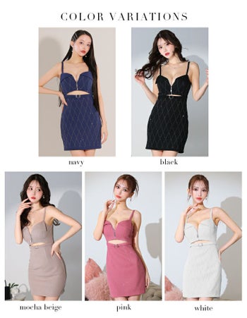 4. 【Glossy by ROBE de FLEURS/グロッシー】シンプル ウエストカット キャミソール ストーンリブニット ジップデザイン タイトミニドレス(GL3529)