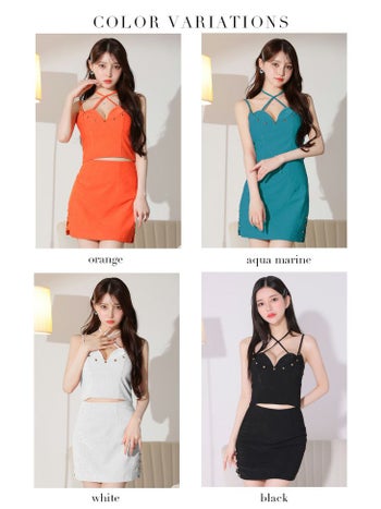 キャバドレス ブランド スエード フロントクロス スタッズ セットアップ セクシー キャミソール タイトミニドレス