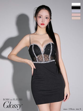 3. 【Glossy by ROBE de FLEURS/グロッシー】ウエストシースルー ビジュー セクシー オープンバスト キャミソール タイトミニドレス (GL3565)