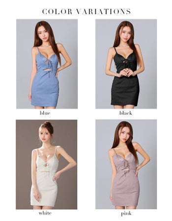 3. 【Glossy by ROBE de FLEURS/グロッシー】セクシー オープンバスト レース チュール リボン キャミソール ウエストカット タイトミニドレス (GL3915)