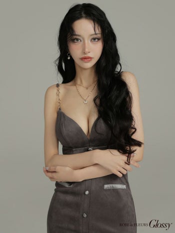 XSあり!高級感抜群☆ 【Glossy by ROBE de FLEURS/グロッシー】フロントボタン フェイクスエード セクシー キャミソール オープンバスト タイトミニドレス (GL3944)