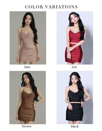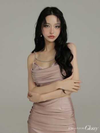 3. 【Glossy by ROBE de FLEURS/グロッシー】キャミソール ストーン セットアップ ドレープ サテン チェーンストラップ タイトミニドレス (GL3952)