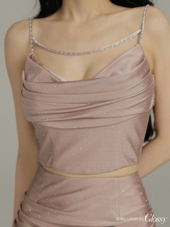 XSあり!煌めきと華やかさを演出♪ 【Glossy by ROBE de FLEURS/グロッシー】チェーンストラップ サテン キャミソール ストーン セットアップ ドレープ タイトミニドレス (GL3952)