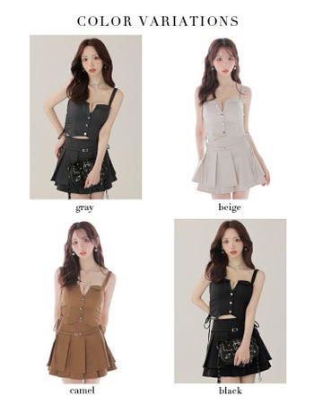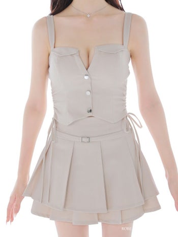 3. 【Glossy by ROBE de FLEURS/グロッシー】Vカット ウエストベルト ドロストデザイン プリーツ セットアップ セクシー キャミソール フレアミニドレス (GL4112)