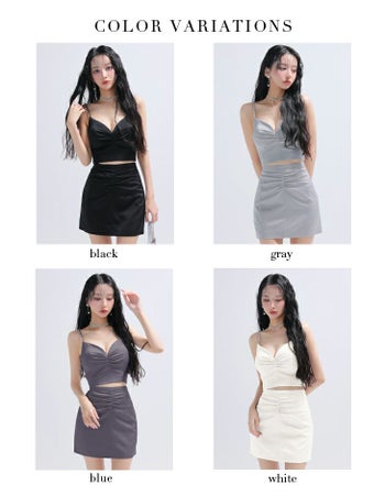 4. 【Glossy by ROBE de FLEURS/グロッシー】サテン シンプル セットアップ キャミソール ギャザー ワンカラー タイトミニドレス (GL4130)