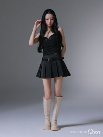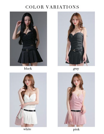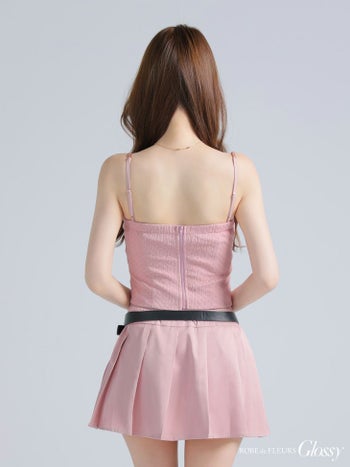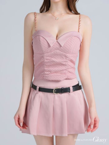 4. 【Glossy by ROBE de FLEURS/グロッシー】キャミソール セットアップ ハートカット ウエストベルト プリーツ シンプル フレアミニドレス (GL4219)