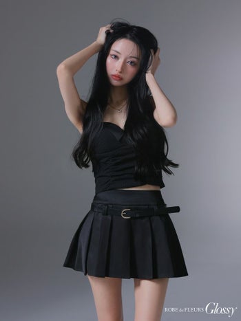 4. 【Glossy by ROBE de FLEURS/グロッシー】ハートカット ウエストベルト キャミソール セットアップ プリーツ シンプル フレアミニドレス (GL4219)