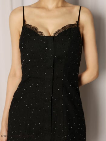 4. 【Glossy by ROBE de FLEURS/グロッシー】キャミソール ビジュー シンプル レース セクシー タイトミニドレス (GL4329)