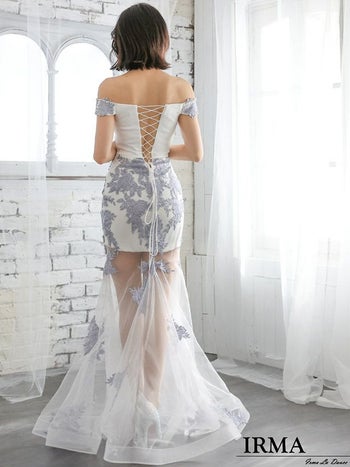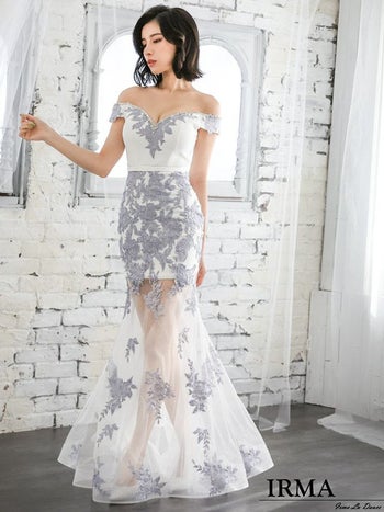 4. 【IRMA/イルマ】チュールスカート刺繍 オフショルダー タイトロングドレス[アイボリー×ダブグレー]