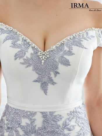 3. 【IRMA/イルマ】チュールスカート刺繍 オフショルダー タイトロングドレス[アイボリー×ダブグレー]