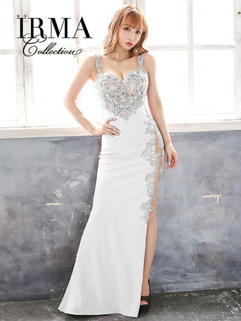 気品に満ちた女性へ導くキャバドレス♪ 【IRMA/イルマ】フラワーレース ホワイト タイトロングドレス