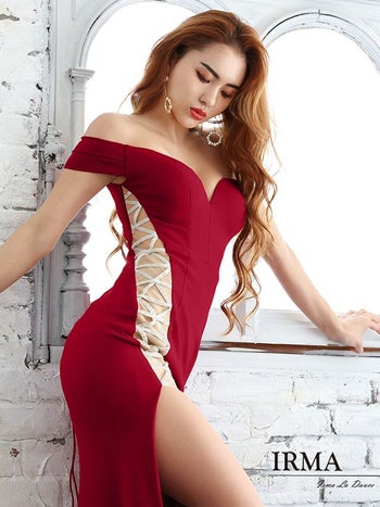 気品に満ちた女性へ導くキャバドレス♪ 【IRMA/イルマ】サイドシースルー オフショルダー タイトロングドレス[1color]