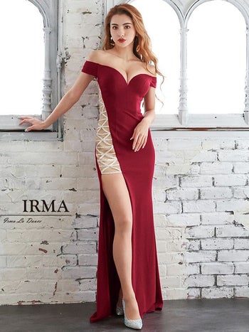 4. 【IRMA/イルマ】サイドシースルー オフショルダー タイトロングドレス[1color]