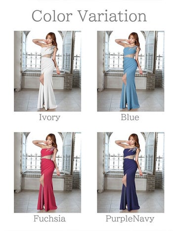 IRMA[イルマ]ワンカラー ビジュー シアー カッティング スリット ワンショルダー タイト 高級ロングドレス[ブルー][真優川咲/キャバドレス着用][31333]